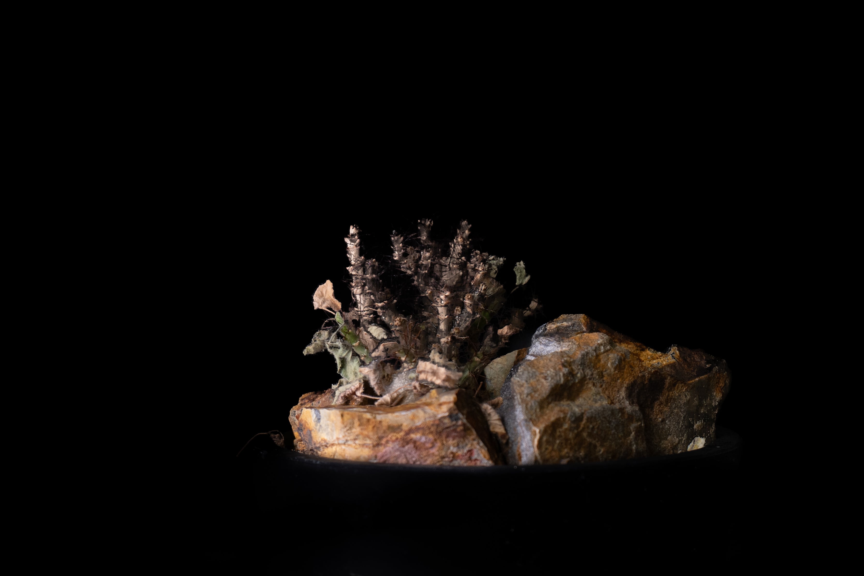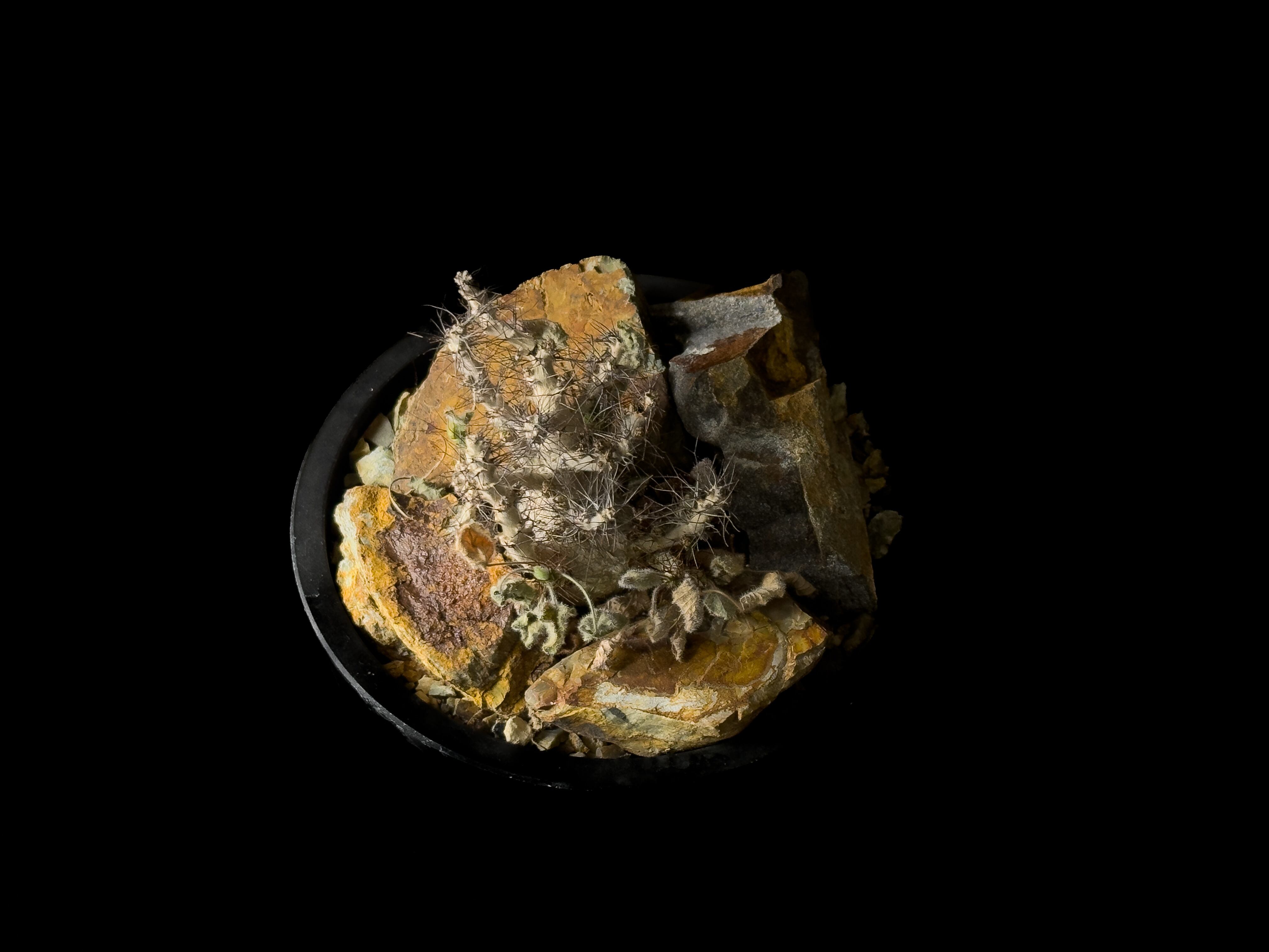 RePlantsでは、店主が想像する生育環境をもとに“ハビタットスタイル”として植え付けを行っています。本作もあくまで架空の景観であり、実際の自生地を再現したものではありません。岩の配置や用土の質感を変えることで、ヤトロファ・マルギナータが落ち着くよう控えめにまとめています。
