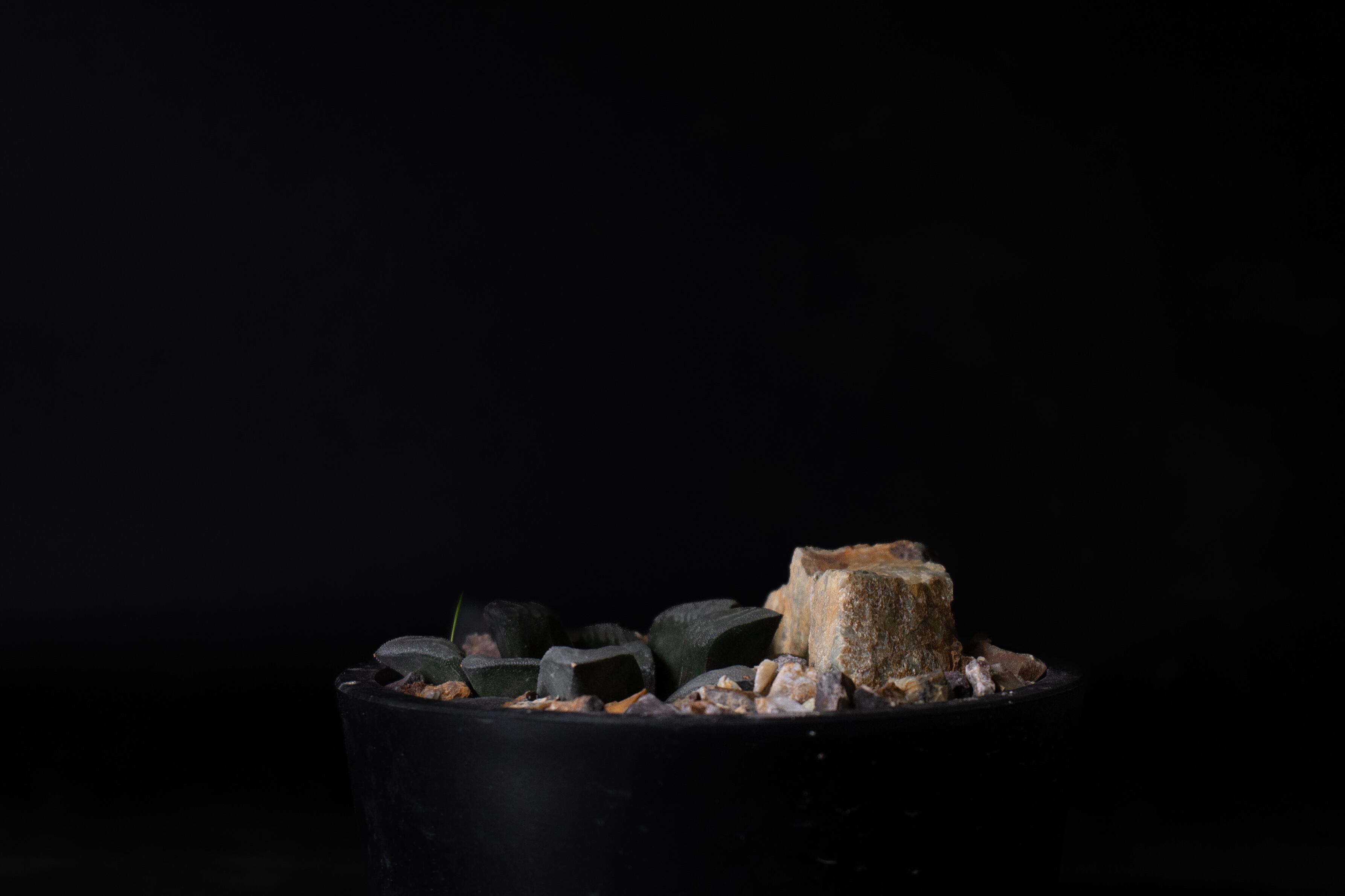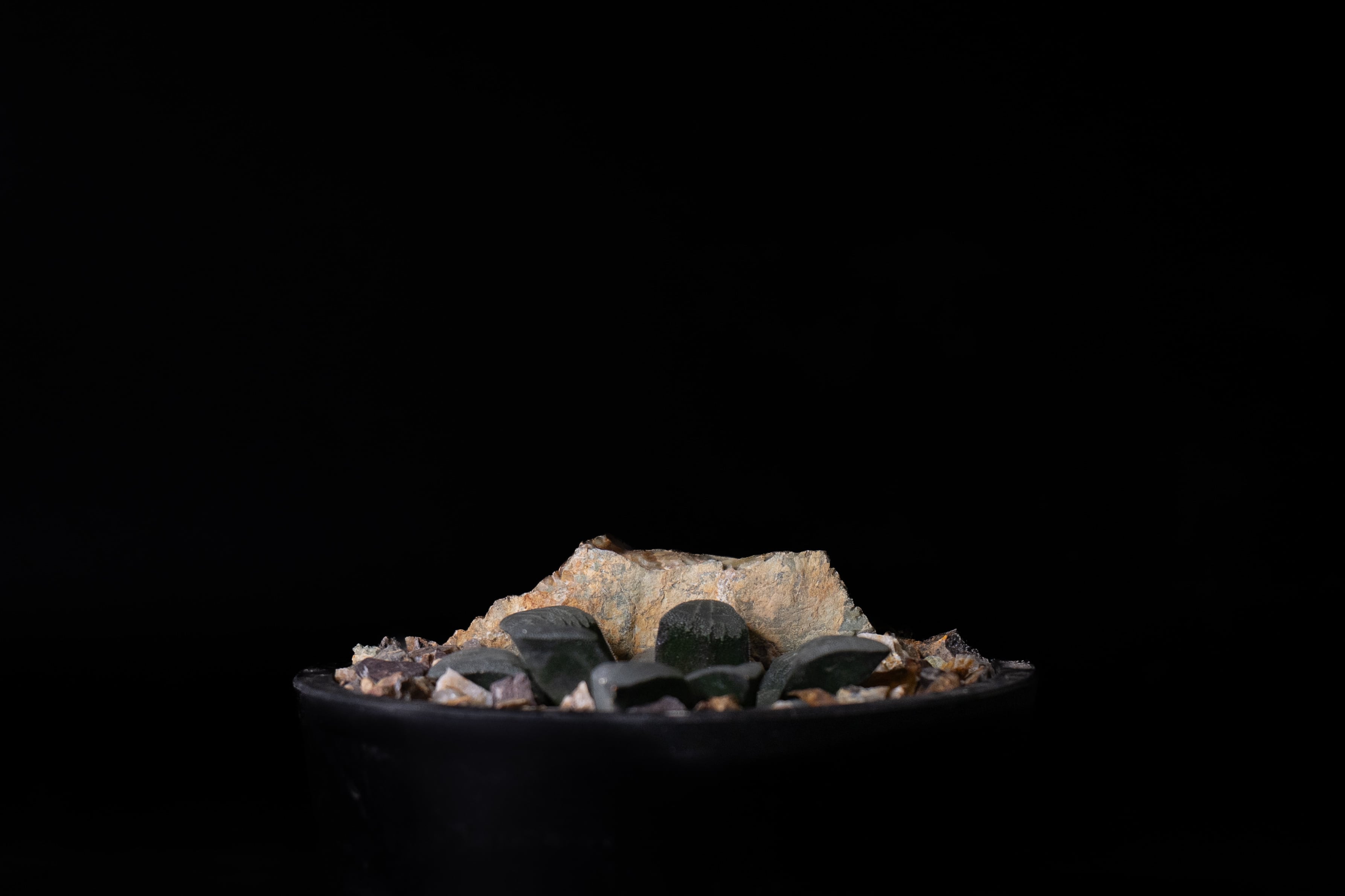 RePlantsでは、店主が想像する生育環境をもとに“ハビタットスタイル”として植え付けを行っています。本作も架空の設定に基づくもので、実際の自生環境を再現したものではありません。今回は「株の大部分が地中にあり、光を取り込むために窓だけが砂礫層から顔を出す」イメージで配置しています。