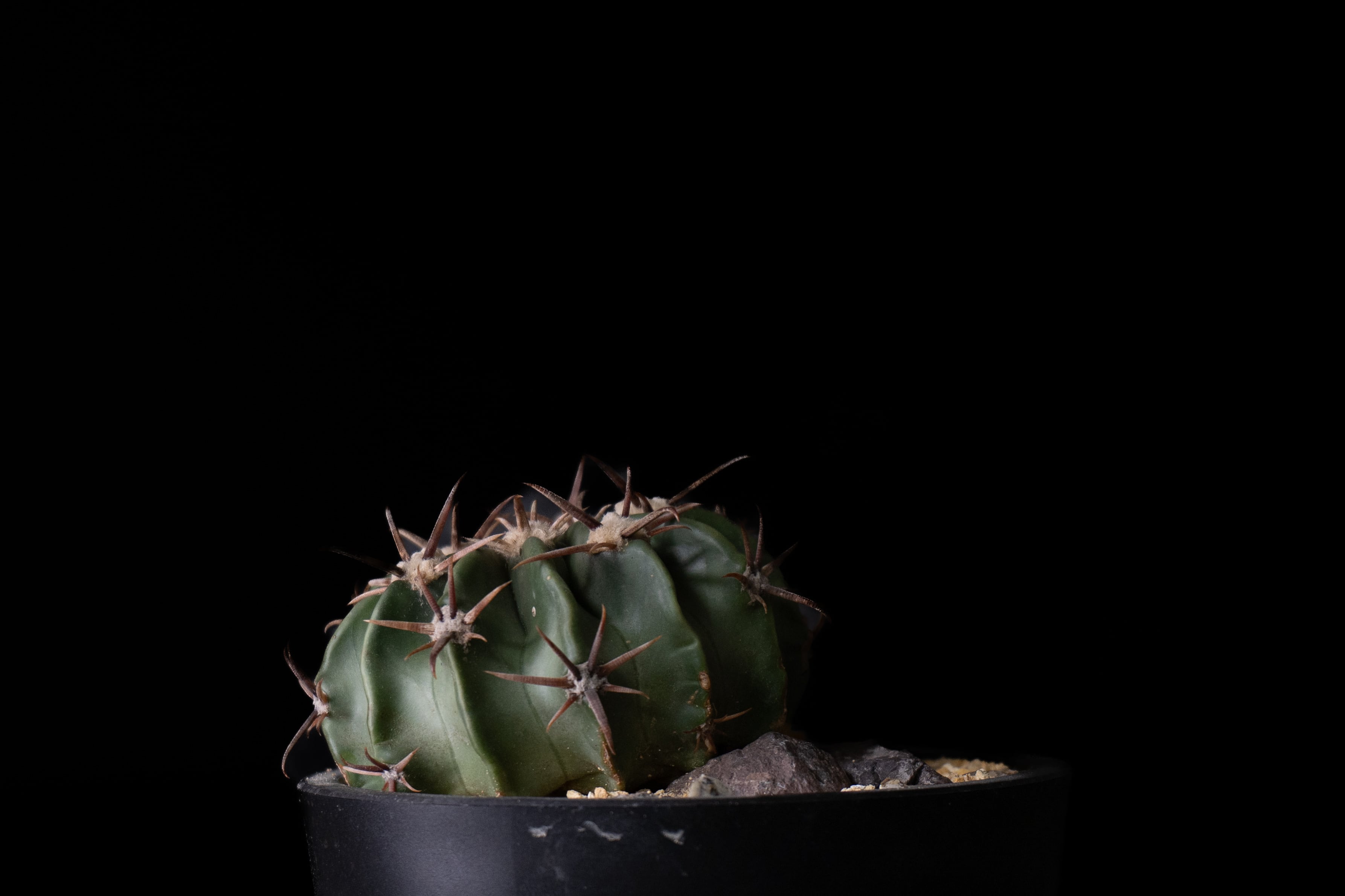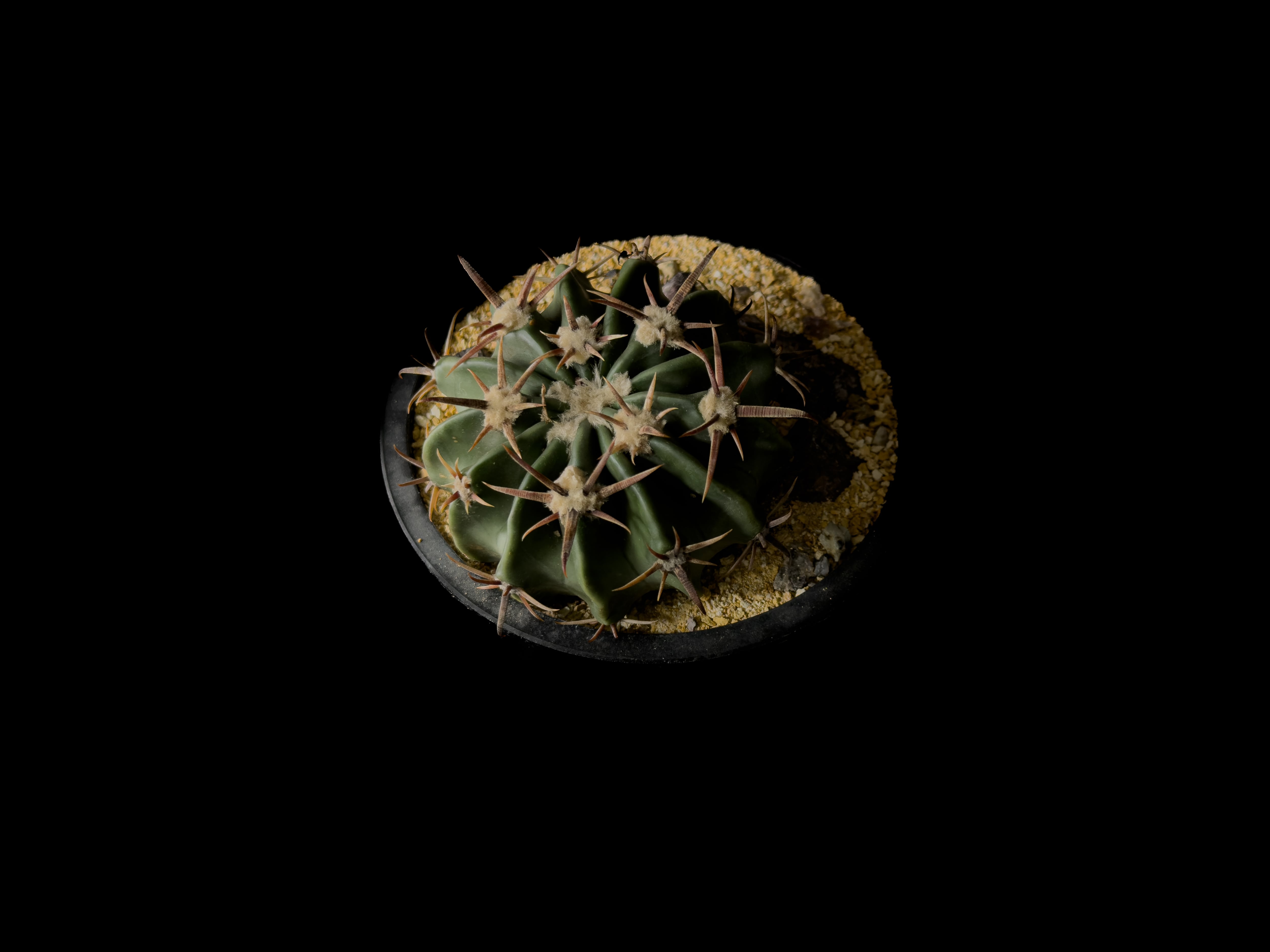 綾波は強健で、適切な管理下では生育が安定しやすい種類です。硬質な肋と整った棘座は、株が充実していくにつれ輪郭がはっきりし、季節によって刺色の変化も見られます。今回の株も、締まった球体に適度な刺量が備わり、落ち着いた印象の個体です。