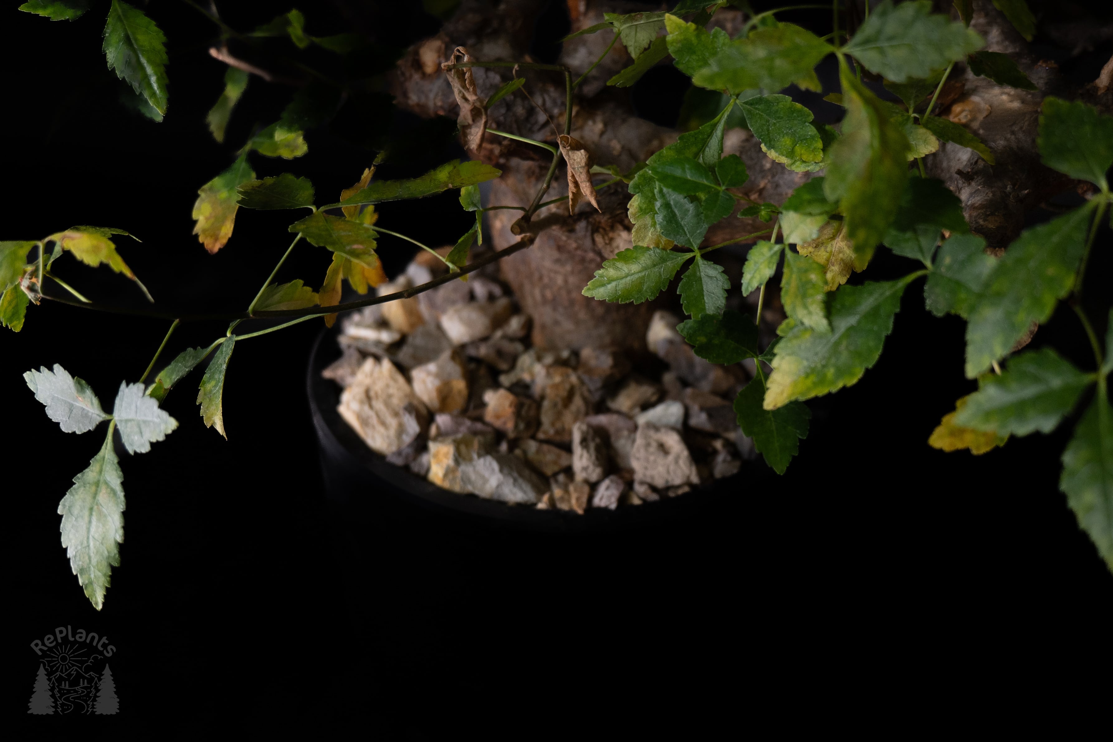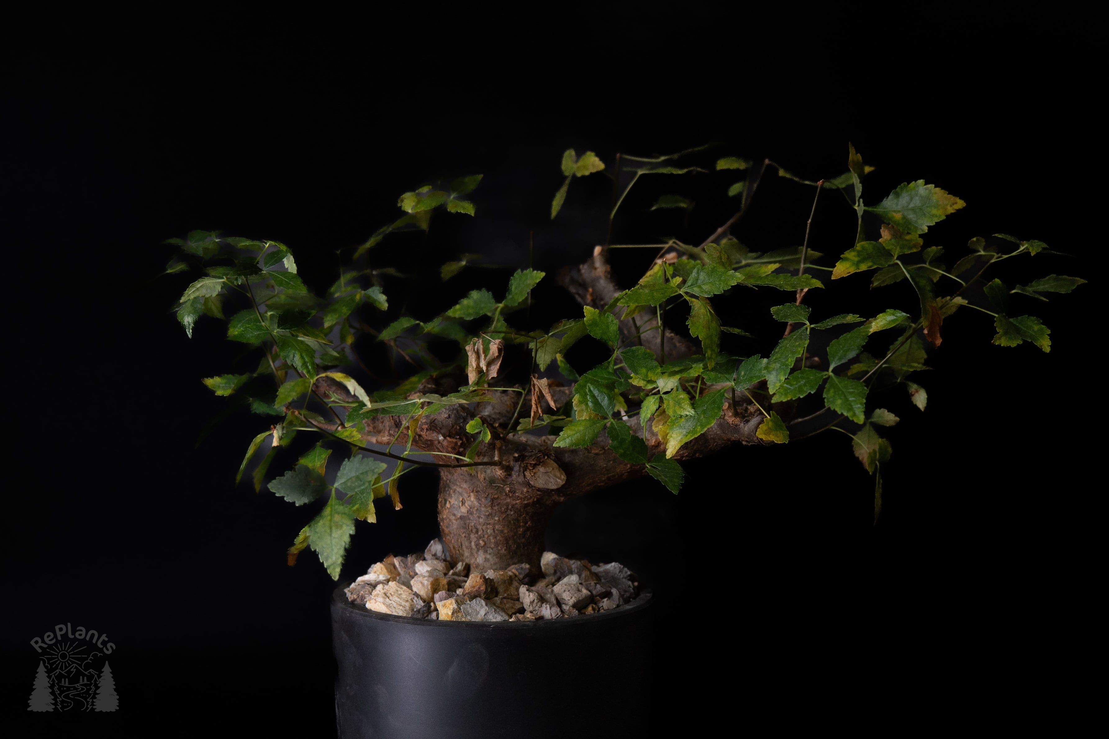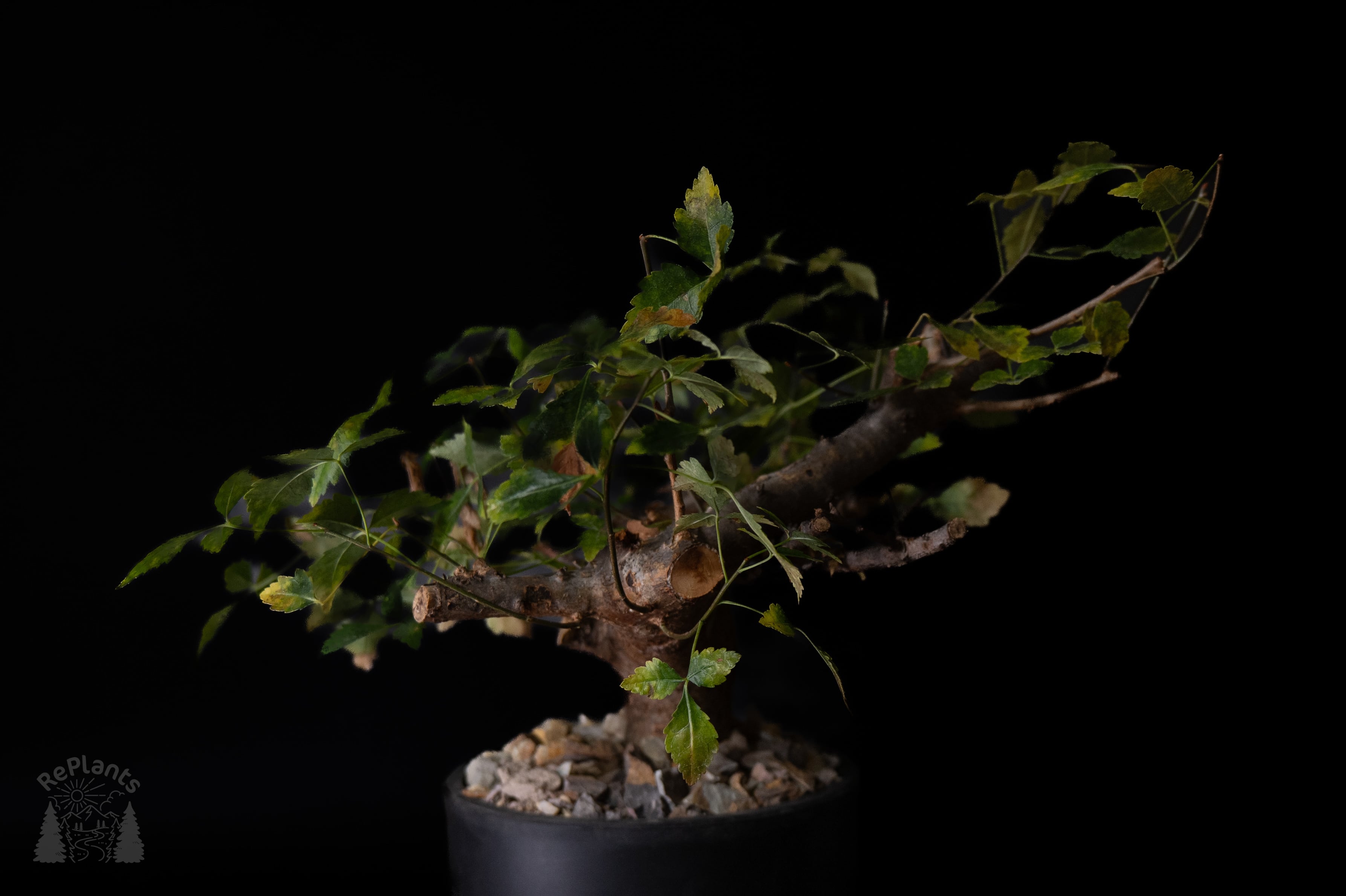 枝先の葉は小さく、風の通り道を知っているように揺れる。光をあてると枝影が地面に落ち、まるで陽射しの角度まで含めて一つの情景として完結しているようだ。