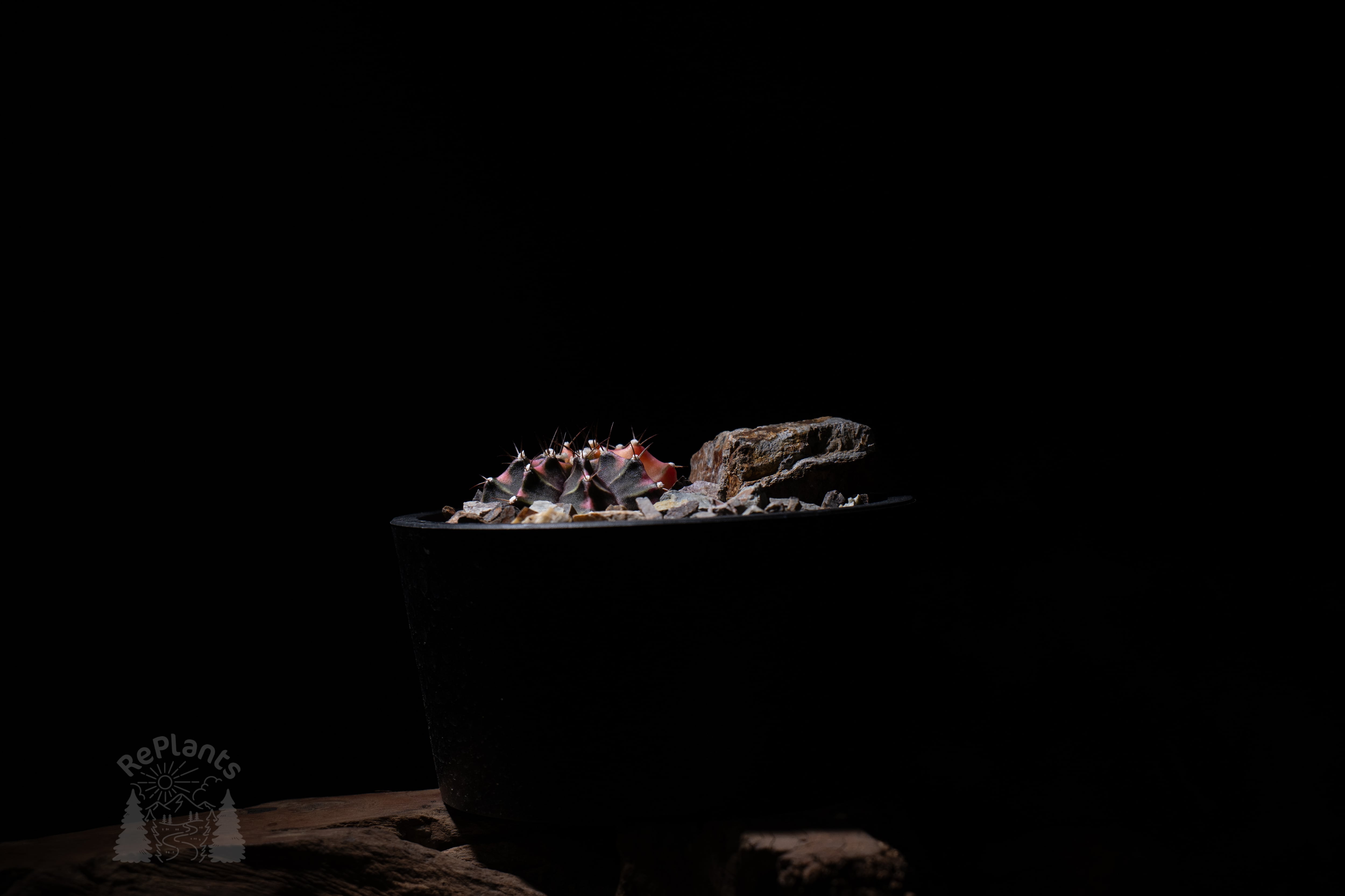 植物・岩石・鉢を一体で構成しており、完成形の状態でお届けします。